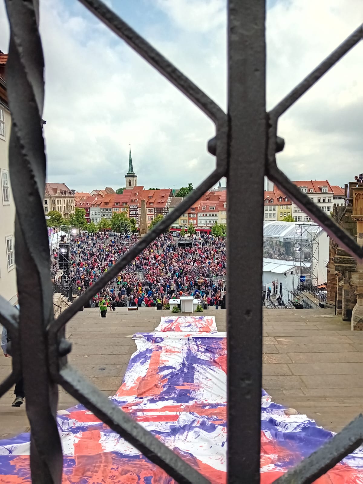 Für mich war der Katholikentag in Erfurt in Eindrücken und Erinnerung vor allem ein vielfältiges und vielseitiges Wiedersehen mit Erfurt, der Stadt, die ich vor 8 Jahren, nach 16 Jahren dort, verlassen habe, als ich nach der Emeritierung vom Professor zum Spiritual (in Lantershofen) wechselte. Die Stadt hat sich deutlich weiterentwickelt, die Menschen, die ich dort kenne, auch! Das machte das Wiedersehen und die Neu-Einstellung meinerseits so spannend, zu sehen, wie sich Menschen, vor allem die Studenten und Studentinnen, auf ihren Wegen weiterentwickeln, ihre Wege finden, Familien gründen, mit ihren Kindern unterwegs sind… und dabei jeweils ihre Erinnerungen in sich tragen! Sehr anregend und Hoffnung gebend, eben nicht nur Erinnerungen! Ich bin sehr dankbar dafür!