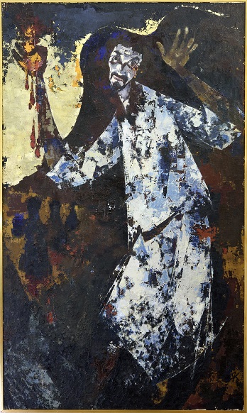 Ein Faltblatt mit dem Bild "Der Tod des Charles de Foucauld" von Rudolf Kaufhold und einem erklärenden Text von Gisbert Greshake.